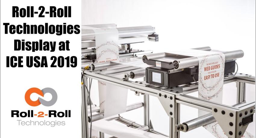 Roll-2-Roll Technologies Unwind Web Guiding System at ICE USA 2019 on the Masterslit DC2 by Dusenbery Converting Syste